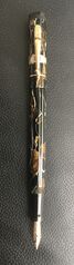 Foto di una penna Swan. Modello: Swan L 205. Caricamento "Leverless". Realizzazione in calluloide nera marrone venata crema. Modello marcato L205/47. Riporta la stampigliatura del brevetto nº GB-390585. Contributo di Modello60, (utente forum Modello60).