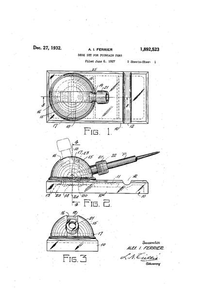 Brevetto per la base di uno stiloforo. Usato della Parker e dalla Eversharp, appare sul foglietto sottostante di stilofori di queste aziende.