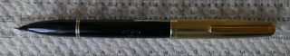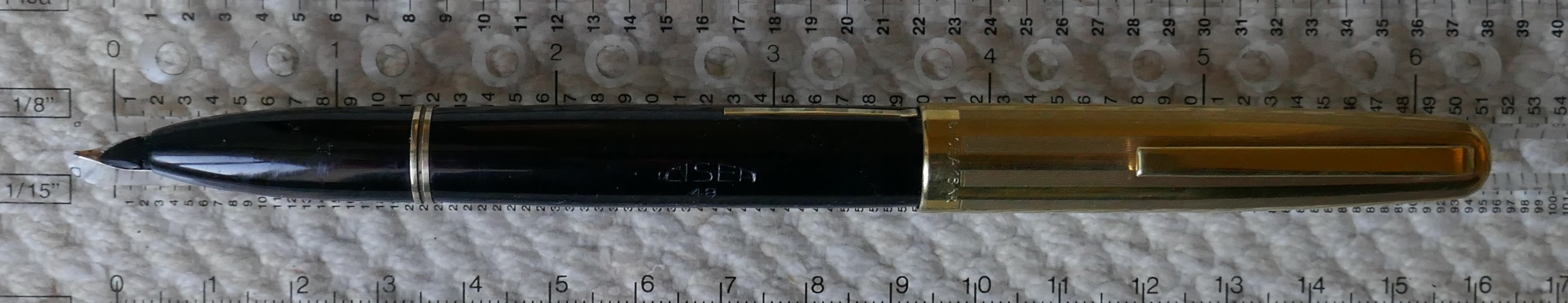 Photo of a pen produced by CISEA. Model: Cisea 48. Filling system: lever filler. In black celluloid. Half hooded nib model, with rolled gold cap.