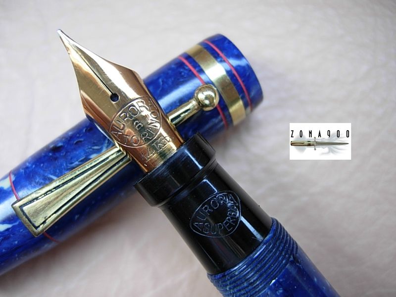 Foto di una penna Aurora. Modello: Superba. Caricamento a levetta. Realizzazione in celluloide blu lapislazzulo. Contributo di Paolo, http://www.zona900.it, (utente forum fountainpen.it sanpei).