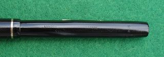 Foto di una penna Curzons (un marchio della Lang - Curzon - Summit). Modello: Summit H.75. Caricamento a levetta. Realizzazione in celluloide nera. Testa del cappuccio in ebanite. Contributo di Alberto (utente forum A Casirati).