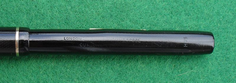 Photo of a pen produced by Curzons (a Lang - Curzon - Summit trademark). Model: Summit H.75. Filling system: lever filler. In black celluloid. Hard rubber cap head.