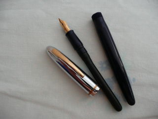 Photo of a pen produced by Eversharp. Model: Symphony. Filling system: lever filler. In black plastic resin. Third version.