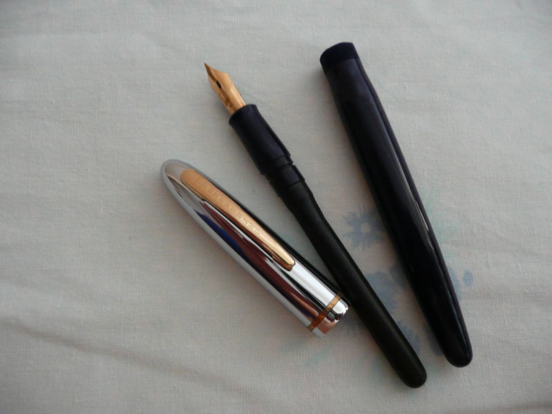 Foto di una penna Eversharp. Modello: Symphony. Caricamento a levetta. Realizzazione in resina plastica nera. Terza versione.