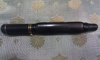 Foto di una penna Omas. Modello: Penna del dottore. Caricamento a levetta. Realizzazione in ebanite nera. Modello molto raro, provvisto di scomparto per il termometro. Pennino non originale.