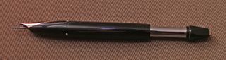 Photo of a pen produced by Sheaffer. Model: Sheaffer PFM. Filling system: "Touch Down snorkel". In black plastic resin. Model PFM-V.