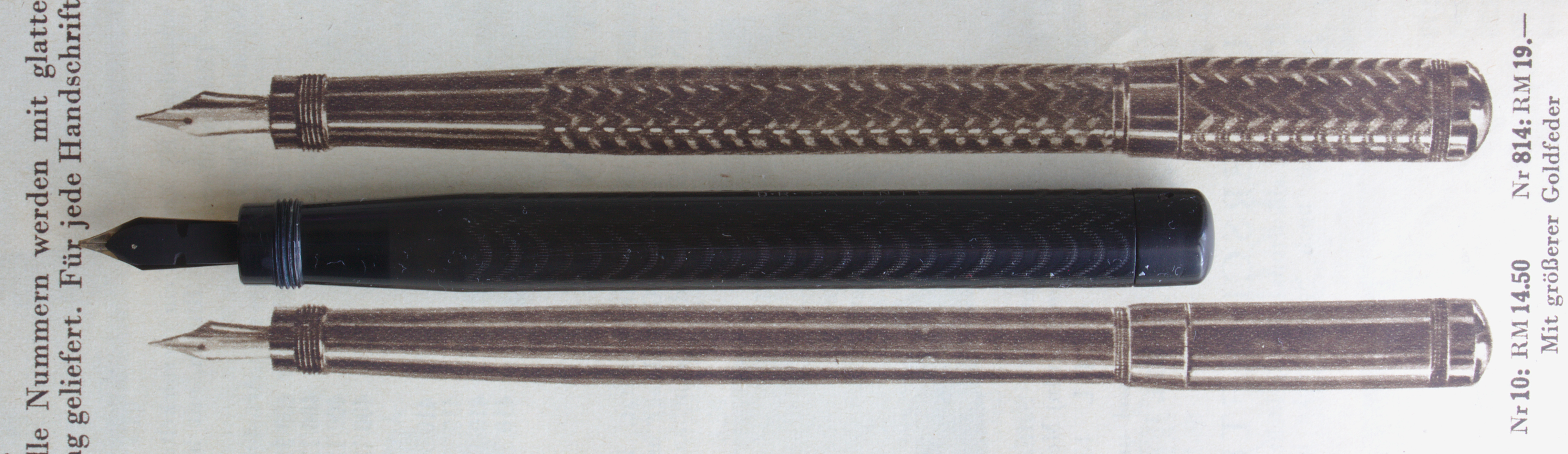 Photo of a pen produced by Soennecken. Model: Soennecken 814. Filling system: safety. In black hard rubber. Courtesy of Fiocchetti (utente forum Fiocchetti).