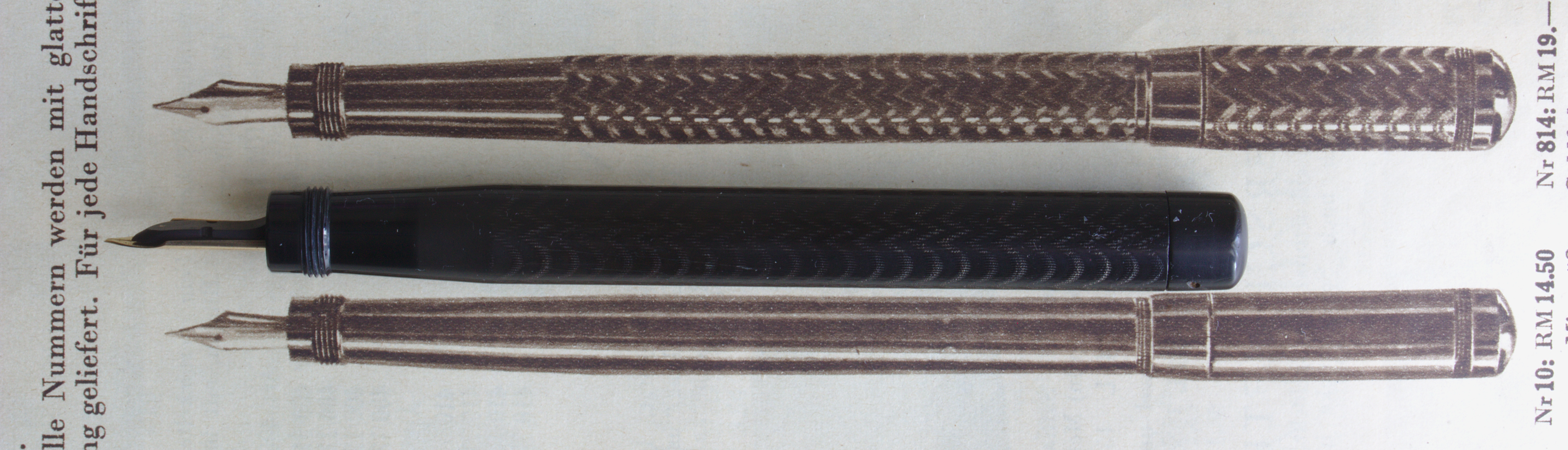 Photo of a pen produced by Soennecken. Model: Soennecken 814. Filling system: safety. In black hard rubber. Courtesy of Fiocchetti (utente forum Fiocchetti).
