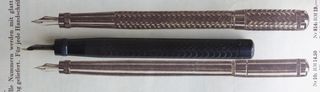 Foto di una penna Soennecken. Modello: Soennecken 814. Caricamento rientrante. Realizzazione in ebanite nera. Messa a disposizione da Fiocchetti (utente forum Fiocchetti).