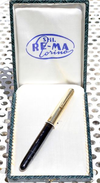 Foto di una penna Stil Re-Ma. Modello: Re-Ma 8056. Caricamento a stantuffo. Modello con cappuccio in metallo dorato. Contributo di Stefano (utente forum netosaf).