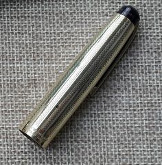 Photo of a pen produced by Summit (a Lang - Curzon - Summit trademark). Model: Summit S.200. Filling system: button filler. In night blue celluloid. Detail of cap. Between the last models produced by the company.