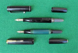 Foto di una coppia di stilografiche. Caricamento "pump filler". Realizzazione in celluloide. Confronto fra una Summit Autovac V76 ed una Typhoo con lo stesso tipo di caricamento. Contributo di Alberto (utente forum A Casirati).