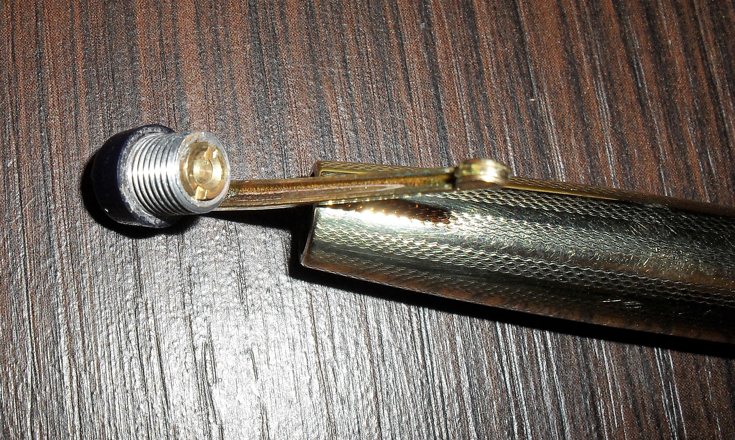 Photo of a pen produced by Summit (a Lang - Curzon - Summit trademark). Model: Summit S.200. Filling system: button filler. In night blue celluloid. Detail of clip. Between the last models produced by the company.