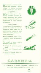 Scanning of a Montblanc instruction sheet from '50s. For a Montblanc 25x model. Rear. On the other side of File:195x-Montblanc-25x-InstrWarr-IT-Front.jpg. Retouched by the author for a better sharpness. Contributed by Paolo, http://www.zona900.it, (utente forum fountainpen.it sanpei). From an original package.