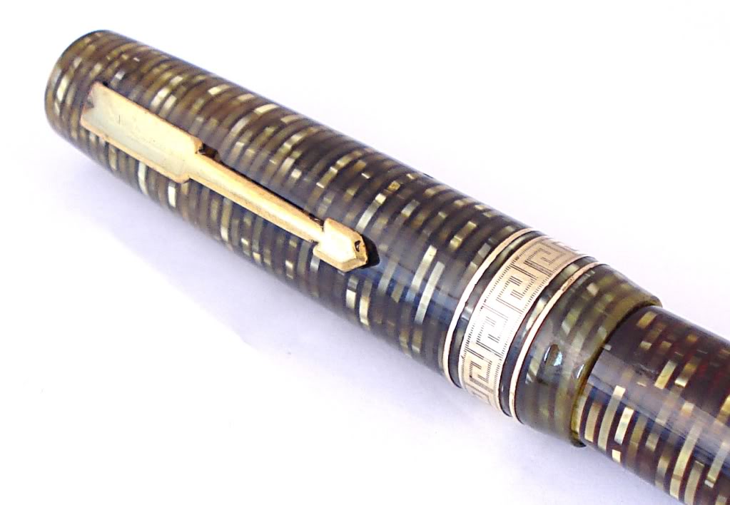 Foto di una Tabo tipo modello Trasparente oversize in celluloide anellata e banda decorata sul cappuccio. Da Fabio (utente forum fountainpen.it fabbale09). Pubblicata col permesso dell'autore.