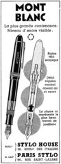 Scansione di una pubblicità Montblanc datata 1955. Ritoccata dall'autore per una migliore nitidezza. Data indicativa, sta per gli anni '50, stabiliti in base alle caratteristiche del modello. Pubblicizza un modello della serie 140, che illustra il meccanismo di caricamento a stantuffo telescopico.