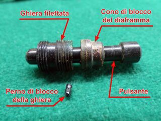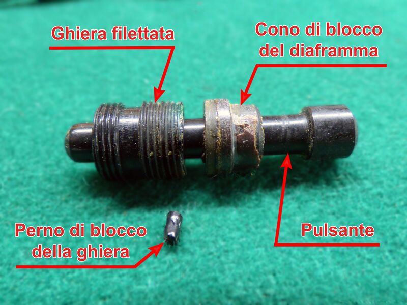 Il meccanismo smontato del caricamento simil-Vacumatic di una Zemax, smontato ed estratto dalla penna.