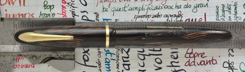 Versione del 11 mar 2022 alle 00:29 di Piccardi (discussione | contributi) (== Dettagli == {{PhotoInfo |Marca=Columbus |Modello=Columbus 55 |Oggetto=pen |Caricamento=lever |Materiale=celluloide |MatDesc_it=striata marrone |MatDesc_en=striated brown |Licenza=Cc-by-sa-3.0 }})