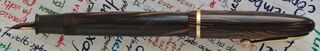 Photo of a pen produced by Columbus. Model: Columbus 55. Filling system: lever filler. In striated brown celluloid.
