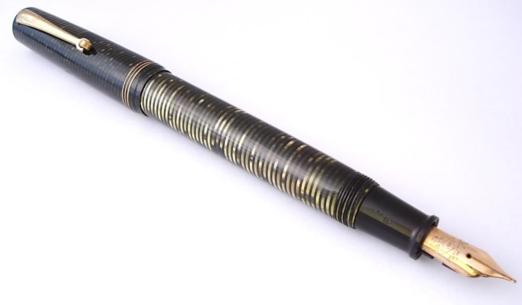 Foto di una stilografica Columbus modello 102 in celluloide anellata verde. Realizzata da Fabio (utente forum fountainpen.it fabbale09). Pubblicata col permesso dell'autore.