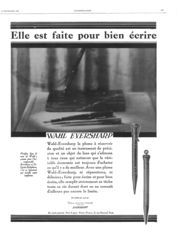 Scansione di una pubblicità Eversharp datata 1927-11-05. Pubblicazione su: L'Illustration. Ritoccata dall'autore per una migliore nitidezza. Data visibile direttamente. Pubblicizza i modelli Wahl Engine Turned (nella lavorazione Colonial) e Signature e le matite meccaniche Eversharp.