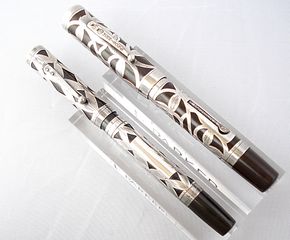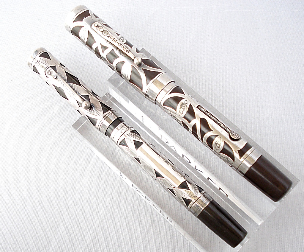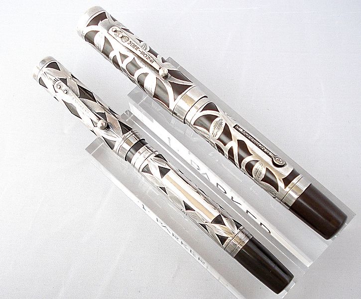 Foto di una stilografica Morrison con decorazione filigree in argento affiancata ad una Waterman 452 simile. Realizzata da Fabio (utente forum fountainpen.it fabbale09). Pubblicata col permesso dell'autore.
