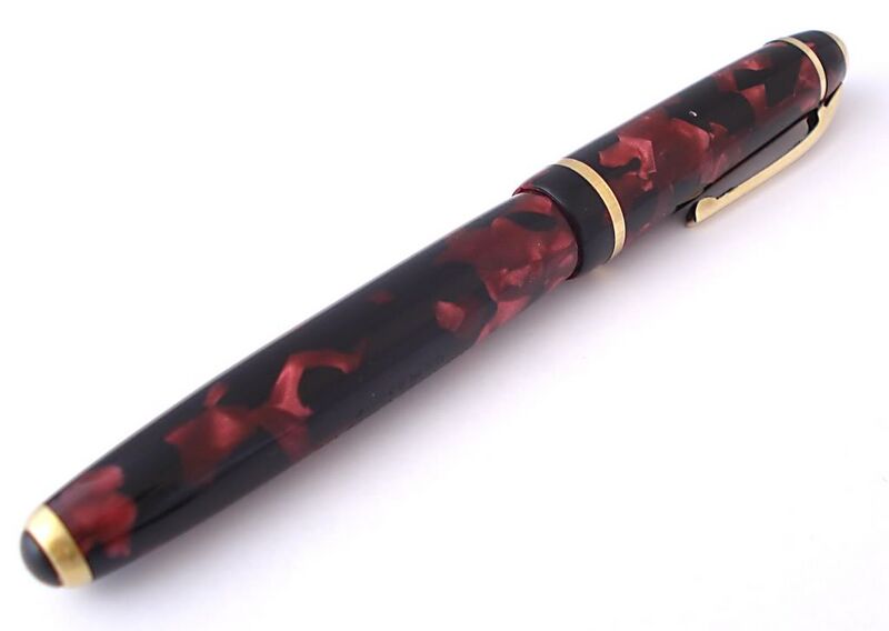 Foto di una stilografica Columbus modello 132 in celluloide marmorizzata rossa. Realizzata da Fabio (utente forum fountainpen.it fabbale09). Pubblicata col permesso dell'autore.