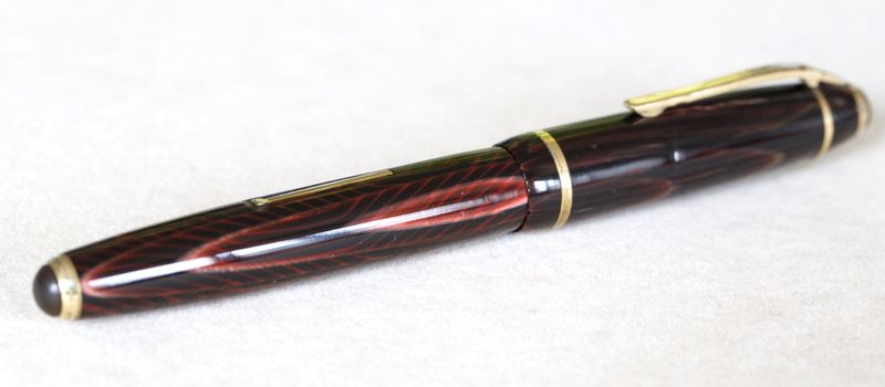 Photo of a pen produced by Columbus. Model: Columbus Extra 134. Filling system: lever filler. In arco-like red celluloid.