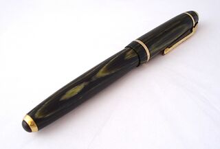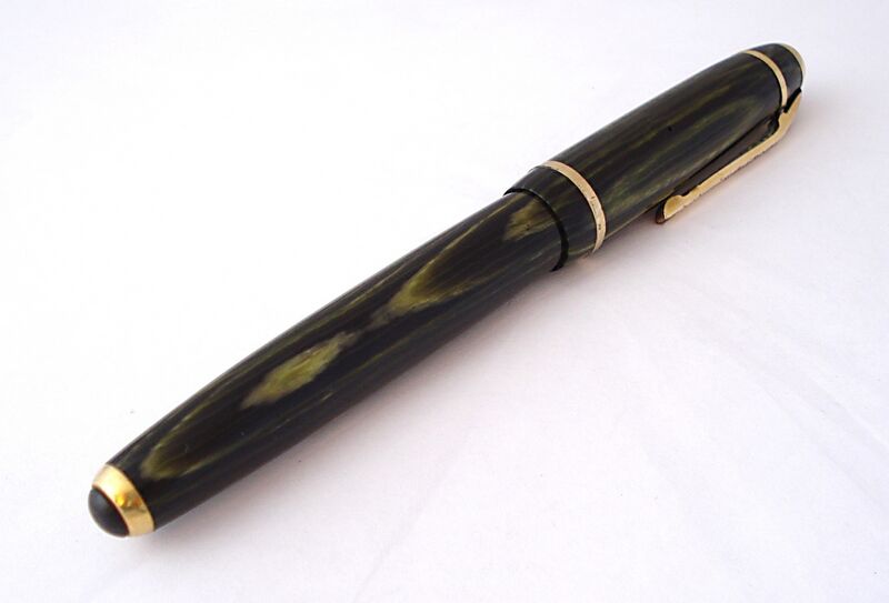 Photo of a pen produced by Columbus. Model: Columbus Extra 132. Filling system: lever filler. In striated green celluloid.