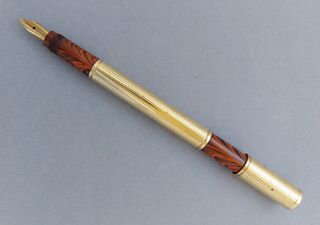 Photo of a pen produced by Waterman. Model: Waterman 42½. Filling system: safety. With guilloché gold rolled overlay. French overlay, in the version called Décor F.