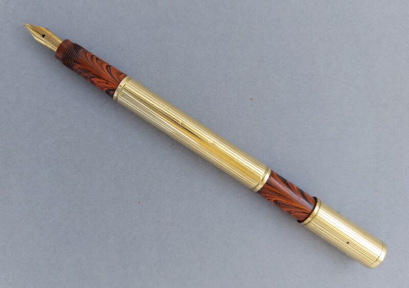 Foto di una penna Waterman. Modello: Waterman 42½. Caricamento rientrante. Realizzazione con rivestimento laminato guilloché. Rivestimento francese, nella versione denominata Décor F. Contributo di Giorgio (utente forum Musicus).