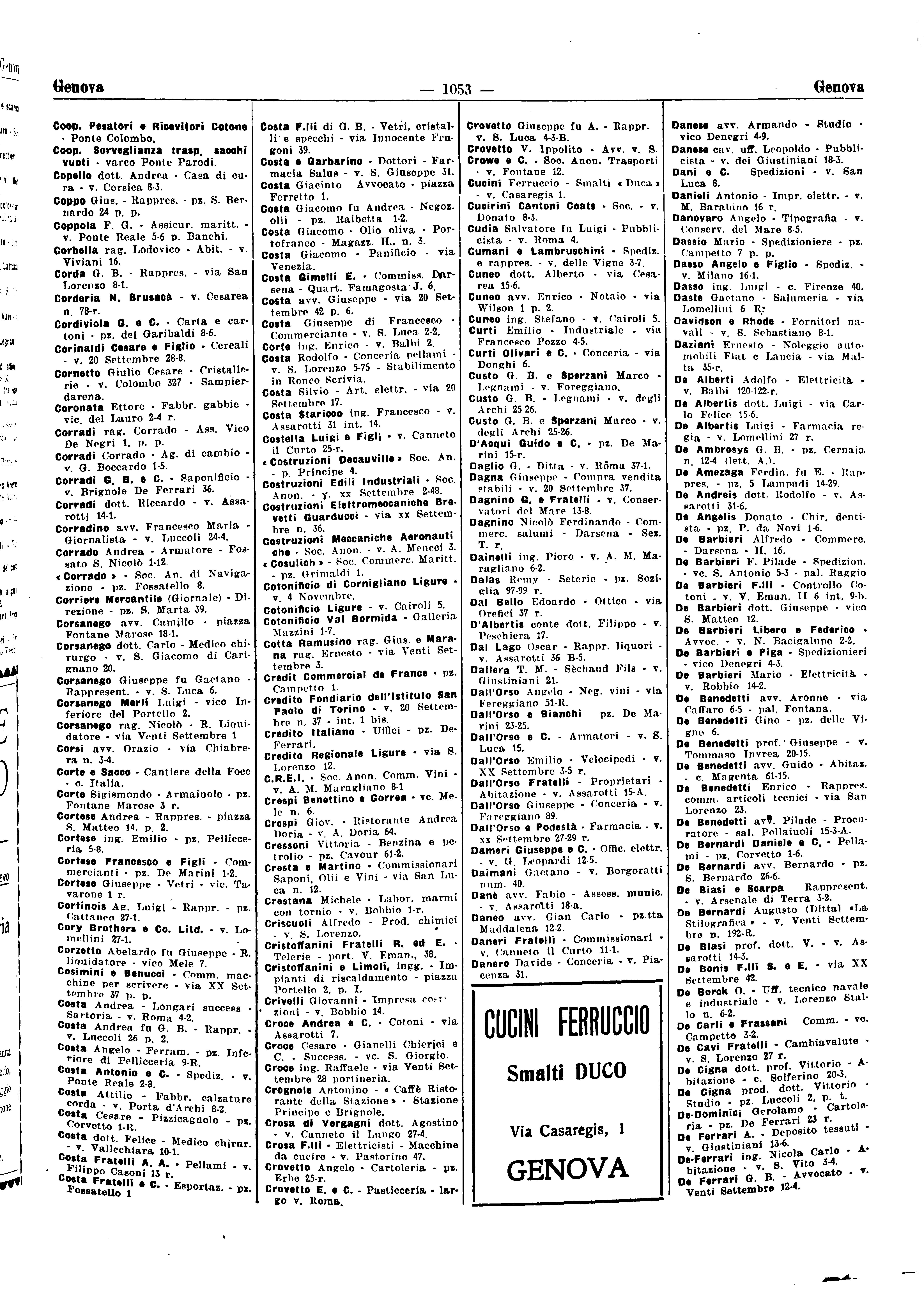 Scansione di un annuario del 1932-08. Tratta da: "Annuario Italiano", anno 1932-1933 (pag. 1053), edito da "Società Editrice dell'Annuario Italiano". Concerne le aziende: Contessa. Pagina nella sezione anagrafica per regione e comune (Liguria e Genova). Riporta: