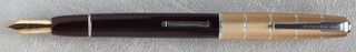 Photo of a pen produced by Waterman. Model: Crusader. Filling system: lever filler. In burgundy ("Red" color) plastic resin. Version "Standard" with open nib, model identified by the cap. Special nib marked "RIGID".