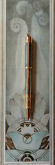 Foto di una penna Eversharp. Modello: Wahl Metal Pen. Caricamento a levetta. Realizzazione in vermeil con lavorazione guilloché e smalto. Misura piccola, da signora, nella lavorazione Niagara, detta anche "brain" o "coral". Contributo di Giorgio (utente forum Musicus).