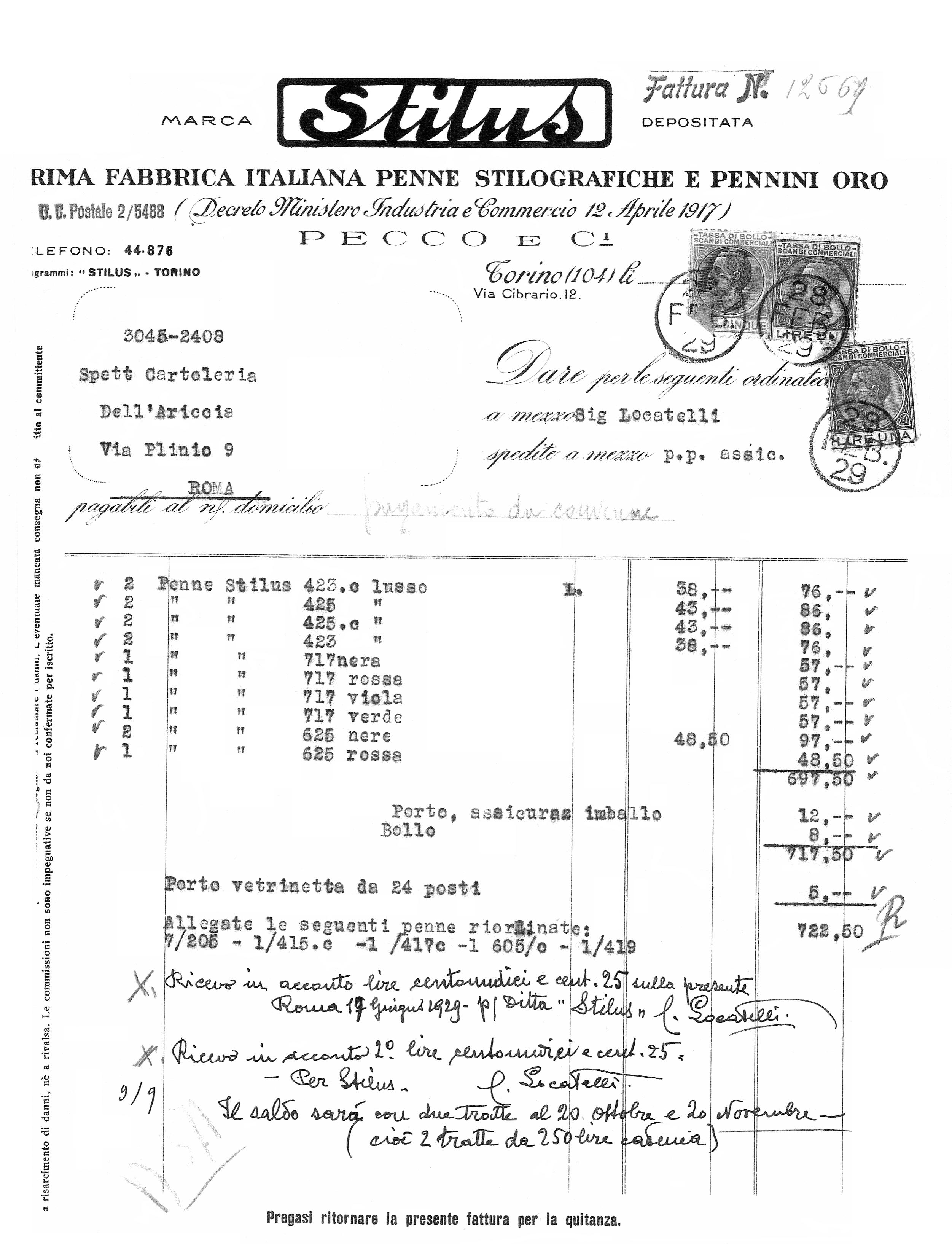 <multilang> @it|Scansione di una fattura Stilus del 1929. Dalla fotocopia del materiale originale fornito da Francesco Gargiulo. @en|Scanning of a 1929 Stilus invoice. By the copy of the original give by Francesco Gargiulo. </multilang>