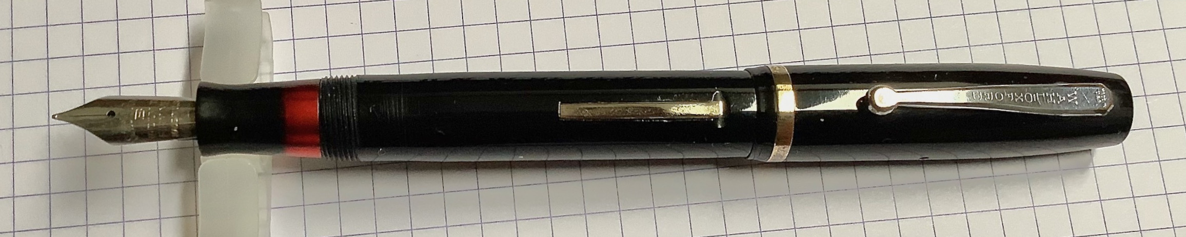 Photo of a pen produced by Oxford (sub-band of Wahl Eversharp). Model: Wahl-Oxford. Filling system: lever filler. In black celluloid. Last version of Wahl-Oxford model, variant called Select-O-Point from the name of the interchangeable nib.
