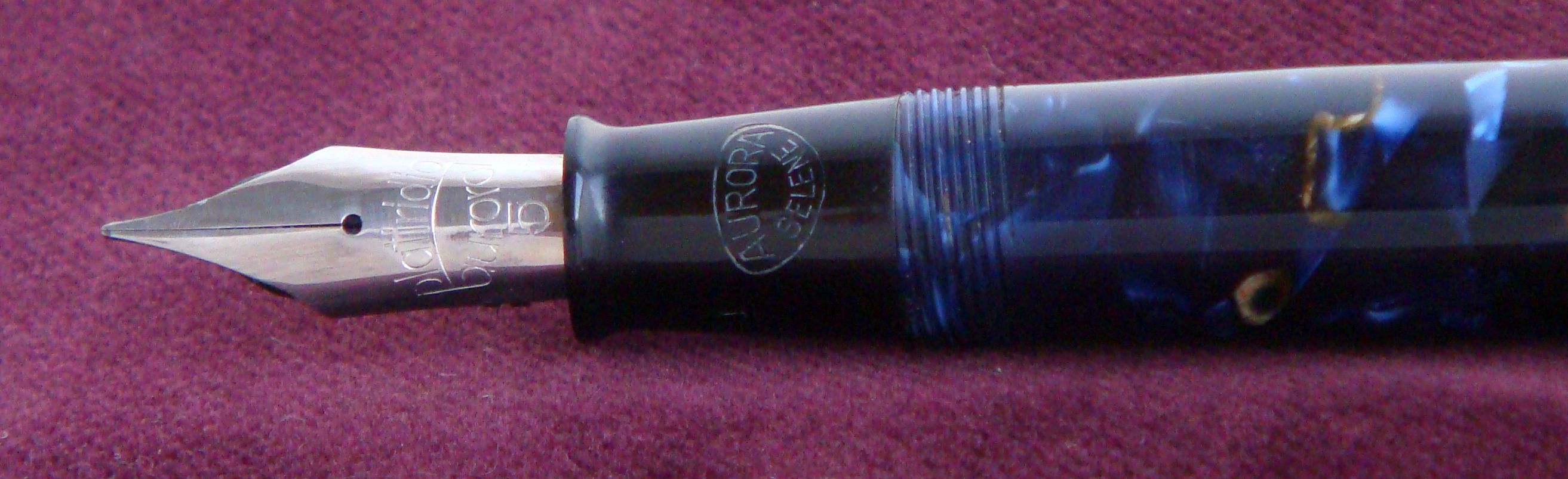 <multilang> @it|Foto di una Aurora Selene in celluloide blu. Realizzata da Roberto, (utente forum.fountainpen.it roberto v). Pubblicata col permesso dell'autore. @en|Photo of an Aurora Selene ib blue celluloid. By Roberto, (utente forum.fountainpen.it roberto v). Published under author permission. </multilang>