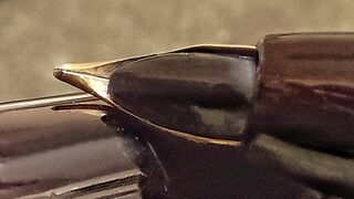 Photo of a pen produced by Waterman. Model: Citation. Filling system: lever filler. In black ("Jet" color) plastic resin. Detail of feeder. Taperite version.
