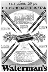 Pubblicità dei modelli prodotti dalla Waterman ai tempi della Patrician. |