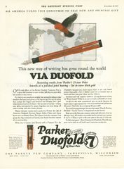Scansione di una pubblicità Parker del 18 Novembre 1922 per il modello Duofold in ebanite rossa. Pubblicata su The Saturday Evening Post.