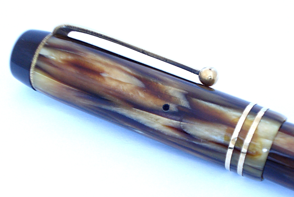 <multilang> @it|Foto di una rara Ancora flat top in celluloide striata, dimensione piccola. Realizzata da Fabio (utente forum fountainpen.it fabbale09). Pubblicata col permesso dell'autore. @en|Photo of a rare flat top Ancora in striped celluloid, junior size. By Fabio (utente forum fountainpen.it fabbale09). Published under author permission. </multilang>