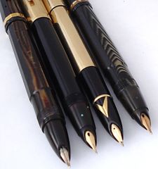 Foto di una serie di diverse Omas 361, nel particolare del pennino. Realizzata da Fabio (utente forum fountainpen.it fabbale09). Pubblicata col permesso dell'autore.