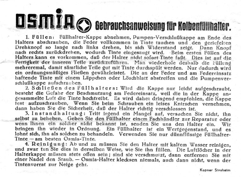 <multilang> @it|Scansione di un foglietto di istruzioni della Osmia degli anni '30. Tratto da una confezione originale. @en|Scanning of a '30s Osmia instruction sheet. From an original package. </multilang>
