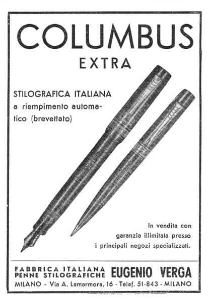 |Note_it=Scansione di una pubblicità del 1932 (incerto) della Columbus modello Extra. Pubblicata sulla rivista del Touring Club Italiano Le vie d'Italia. Ritoccata dall'autore per una maggiore nitidezza. Datazione fornita dal venditore. @en|Scanning of a 1932 Columbus advertising for the Extra model. Pubblished on the monthly magazine Rivista del Touring Club Italiano - Le vie d'Italia. Retouched by the author for a better sharpness. Dating provided by seller. </multilang>