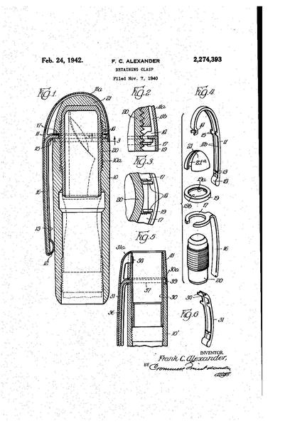 Versione del 15 lug 2012 alle 14:20 di Piccardi (discussione | contributi) ({{PatentInfo |Inventor=Frank C. Alexander |Assignee=Eversharp Inc. |Country=US |ApplicationNum=364615 |ApplicationDate=1940-11-07 |PatentNum=2255093 |PatentDate=1942-02-24 |PriorityDate=1940-11-07 |Titolo=Retaining clasp |Marca=Eversharp |Modello=Skyli...)