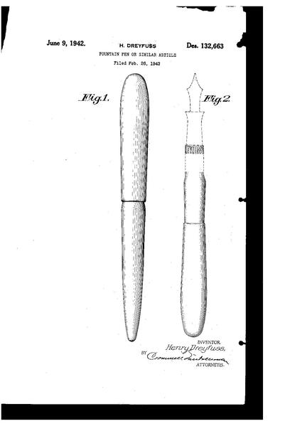Versione del 7 ott 2012 alle 20:45 di Piccardi (discussione | contributi) ({{PatentInfo |Inventor=Henry Dreyfuss |Assignee=The Wahl Company |Country=US |ApplicationNum=90508 |ApplicationDate=1940-02-26 |PatentNum=D132663 |PatentDate=1942-06-09 |PriorityDate=1940-02-26 |Titolo=Design for a pencil or similar article |Marca=Ever...)