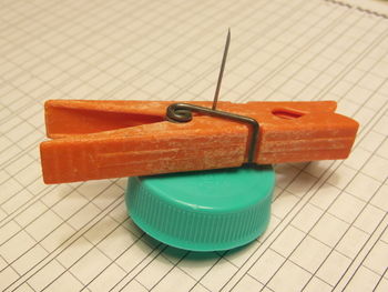 Una soluzione può essere la colla a caldo oppure l'uso di una molletta da panni per trattenere l'ago in posizione anche col tappo montato.