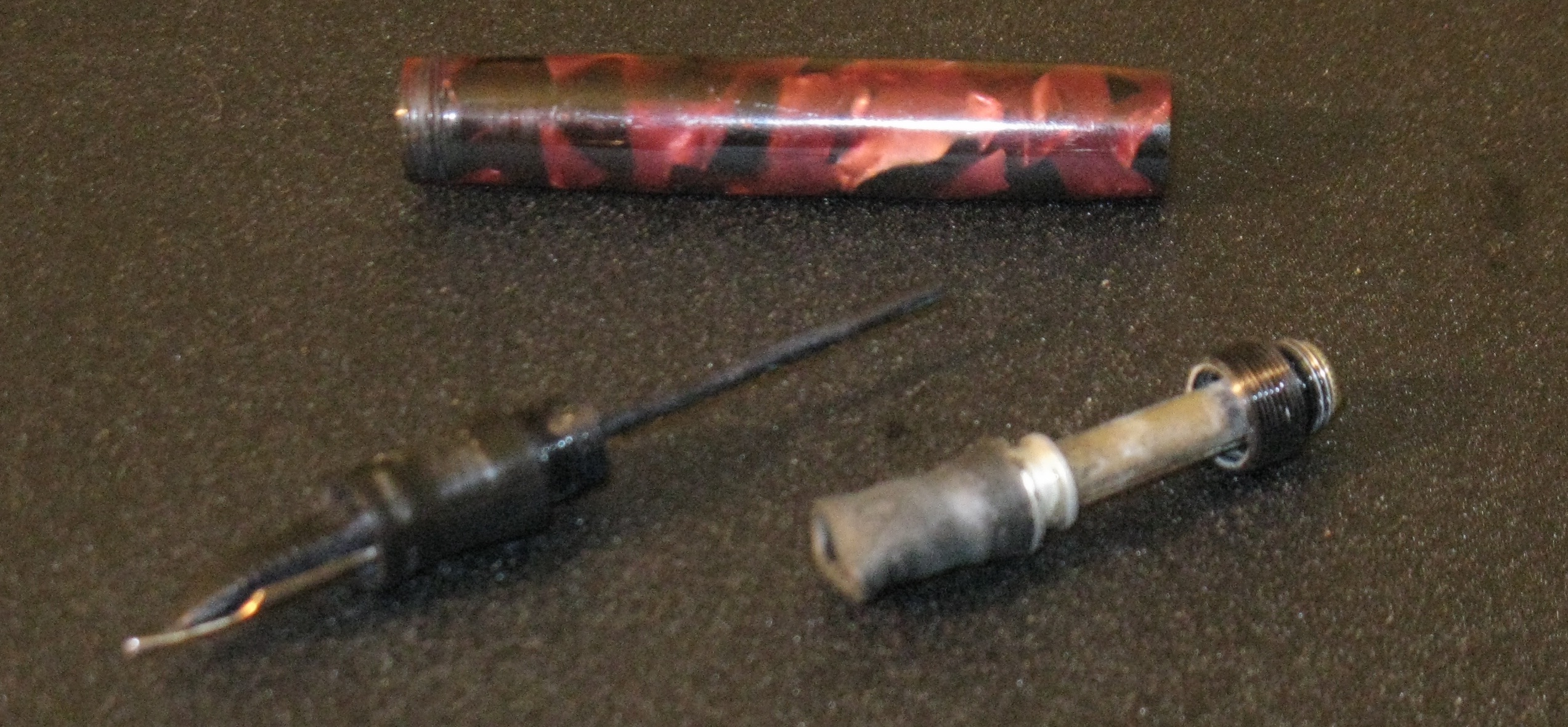 Il corpo di una Parker Vacumatic Lockdown completamente smontato.