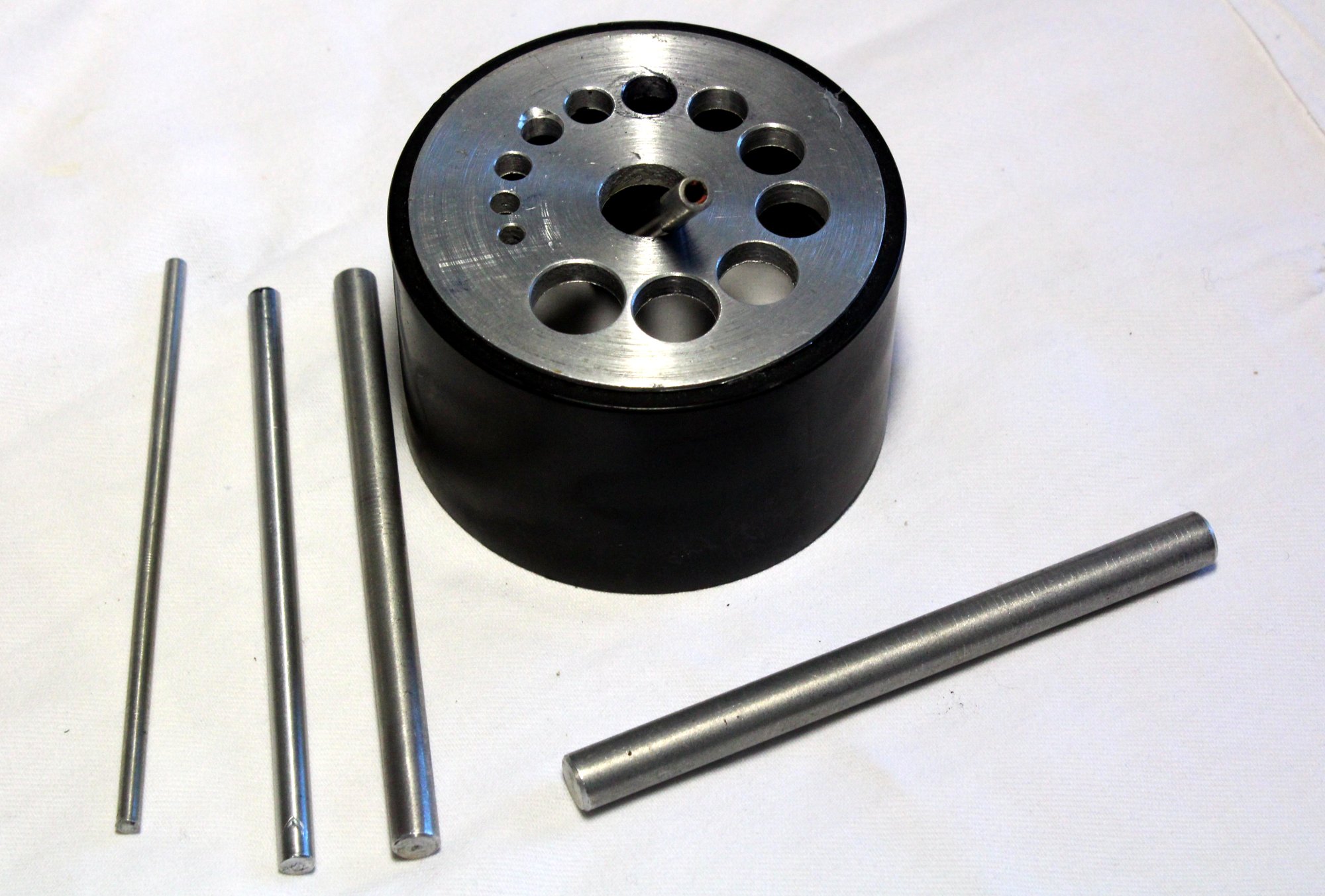 Una volta tagliato il diaframma a misura, si può procedere con l'inserimento nell'alloggiamento sull'albero di caricamento, per fare ciò ci si deve aiutare con un attrezzo apposito (pellet pusher) che permetta di fare pressione sulla pallina e spingerla all'interno dell'alloggiamento. Qui si è utilizzata una punta magnetica uscita da un set di cacciaviti "da orologiaio" da pochi spiccioli (Fig. 5). Una volta inserito il diaframma all'interno dell'alloggiamento si deve rivoltare il diaframma su se stesso; si cosparge l'esterno del diaframma con del talco, e con il diaframma inserito su un supporto lo si rivolta. Si è utilizzata come supporto una chiave per il caricamento di orologi a pendolo (Fig. 5), ma va bene anche una chiave a brugola di dimensioni adeguate se non si ha a disposizione l'attrezzo apposito ed un cacciavite da orologiaio per tenere fermo il diaframma mentre lo si rivolta (Fig.6).