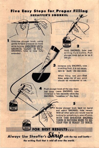 Versione del 20 dic 2012 alle 10:25 di Ottorino (discussione | contributi) (Foglietto istruzioni Sheaffer Snorkel)